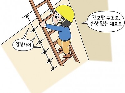 ① 사업주는 사다리식 통로 등을 설치하는 경우다음 각 호의 사항을 준수하여야 한다.1. 견고한 구조로 할 것2. 심한 손상·부식 등이 없는 재료를 사용할 것3. 발판의 간격은 일정하게 할 것