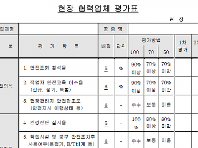 건설현장 협력업체 평가표