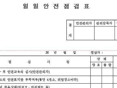 일일안전 점검표