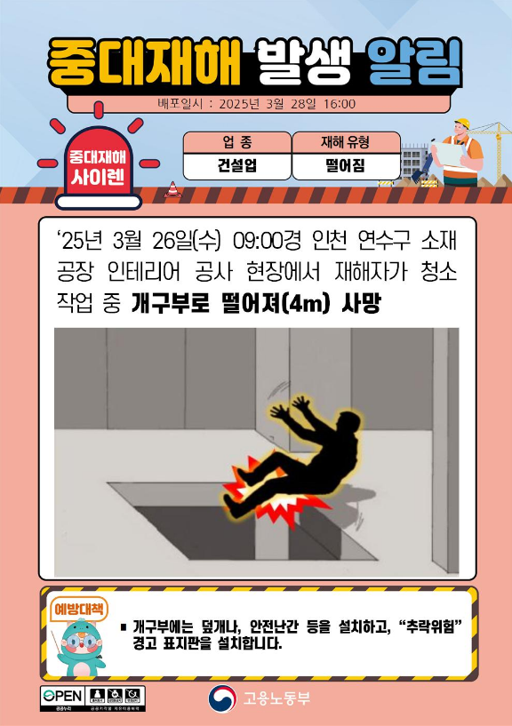 개구부로 떨어져 사망 안전이 0 317 1 0 https://kosha.or.kr/constplan/ECSAA00110M01/notificationDetail.do?bbsc… + 28 개구부로 떨어져 사망 1 0