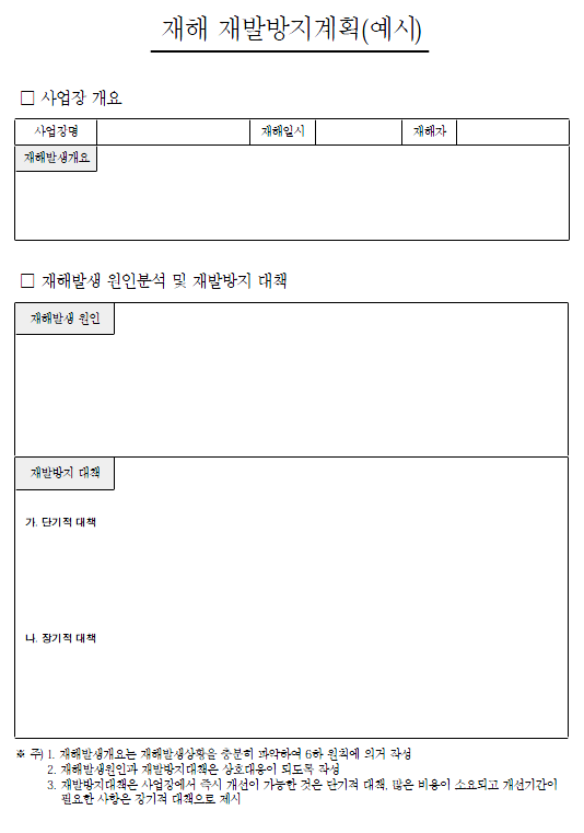 재해 재발방지계획(예시)