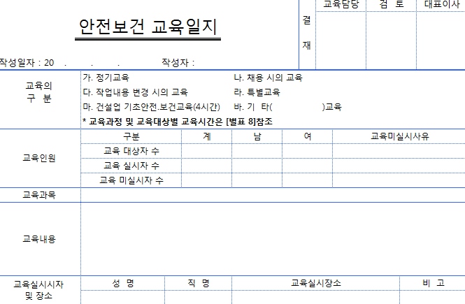안전보건교육일지(예시)