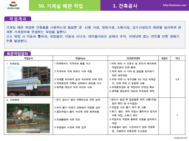 공종별안전관리 절차서 목록표(262종) 제목 클릭 시 바로 이동!!