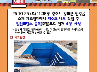 (251027)중대재해 발생 알림 - 고철 압축기 이물질 제거 작업 중 기계에 끼어 사망
